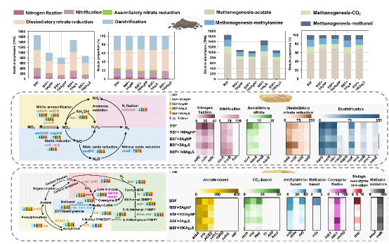 图2.堆肥过程中黑水虻肠道微生物群落中的氮代谢和甲烷代谢